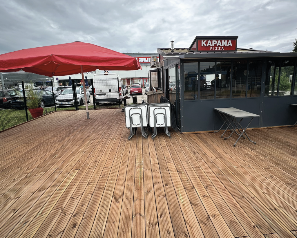 Création d’une terrasse bois spacieuse et élégante pour restaurant